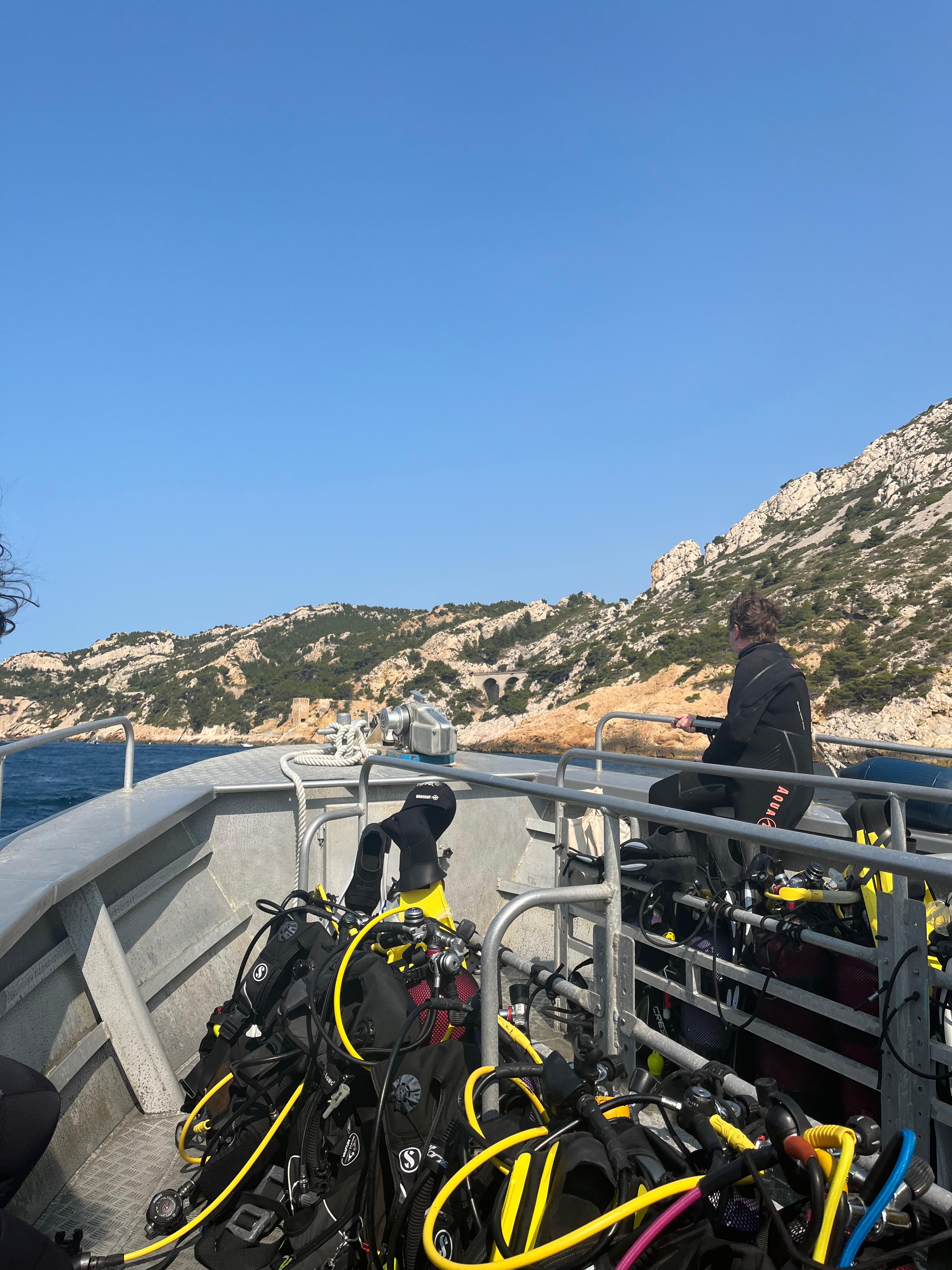 Le premier jour, les premières bulles et les plongeurs Niveau 1 ont apprécié de plonger depuis le quai de Niolon dans la calanque.